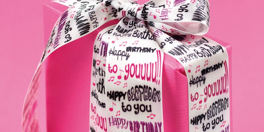 - a ribbon that smiles: a smile pattern and the wish that you “have a nice day” is ideal for gift wrapping in your toy, phone or computer store, as well as for company gift baskets;